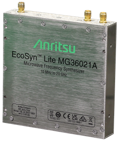 Anritsu's EcoSyn Lite MG36021A is a 10 MHz to 20 GHz CW Microwave frequency synthesizer module in a compact form factor of 4 in x 4 in x 0.8 in. It features outstanding phase noise, ultra-fast switching speed and high output power. EcoSyn Lite has USB and SPI interfaces for remote control and is powered using a +12 VDC source. It supports standard SCPI and QuickSyn™ native commands which make developing scripts to remotely control and automate very easy and user friendly.